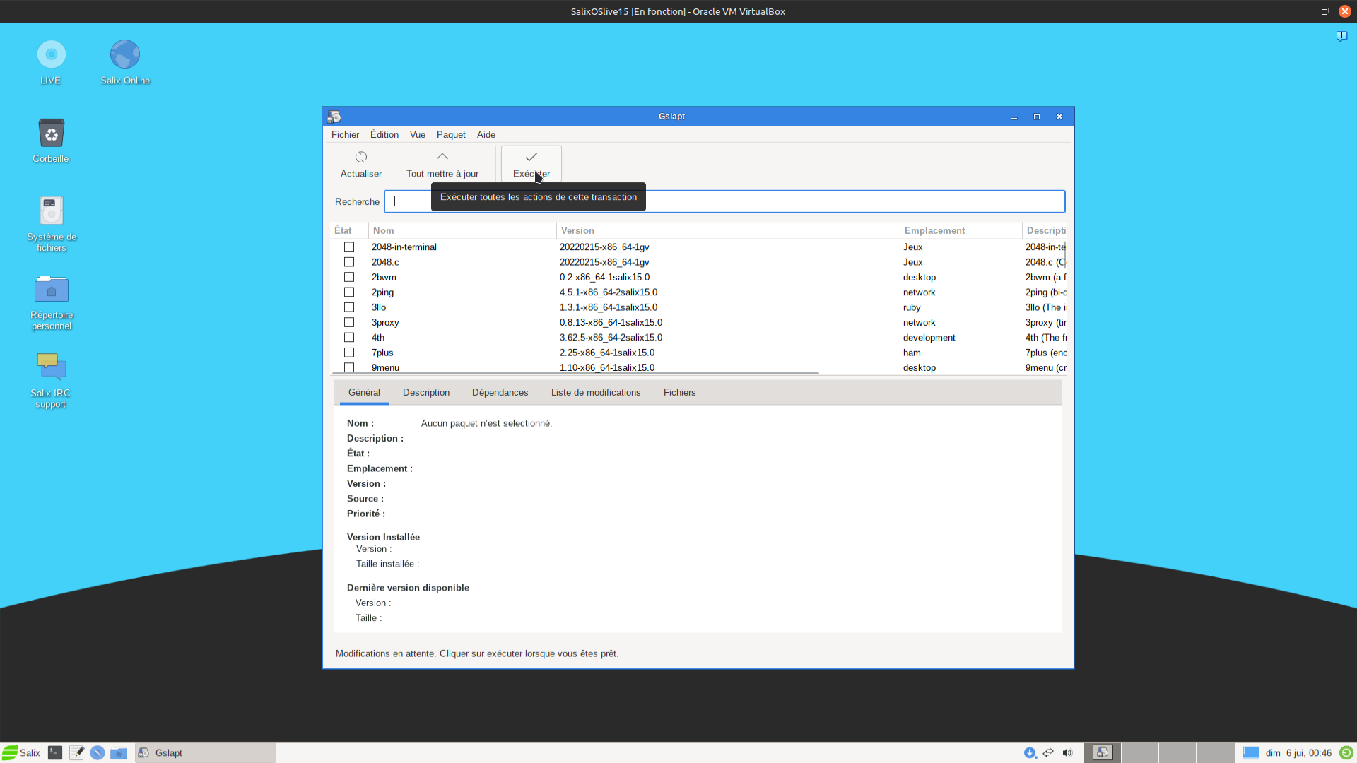 Salixlive Postinstallaction5exécuterlamiseàjour