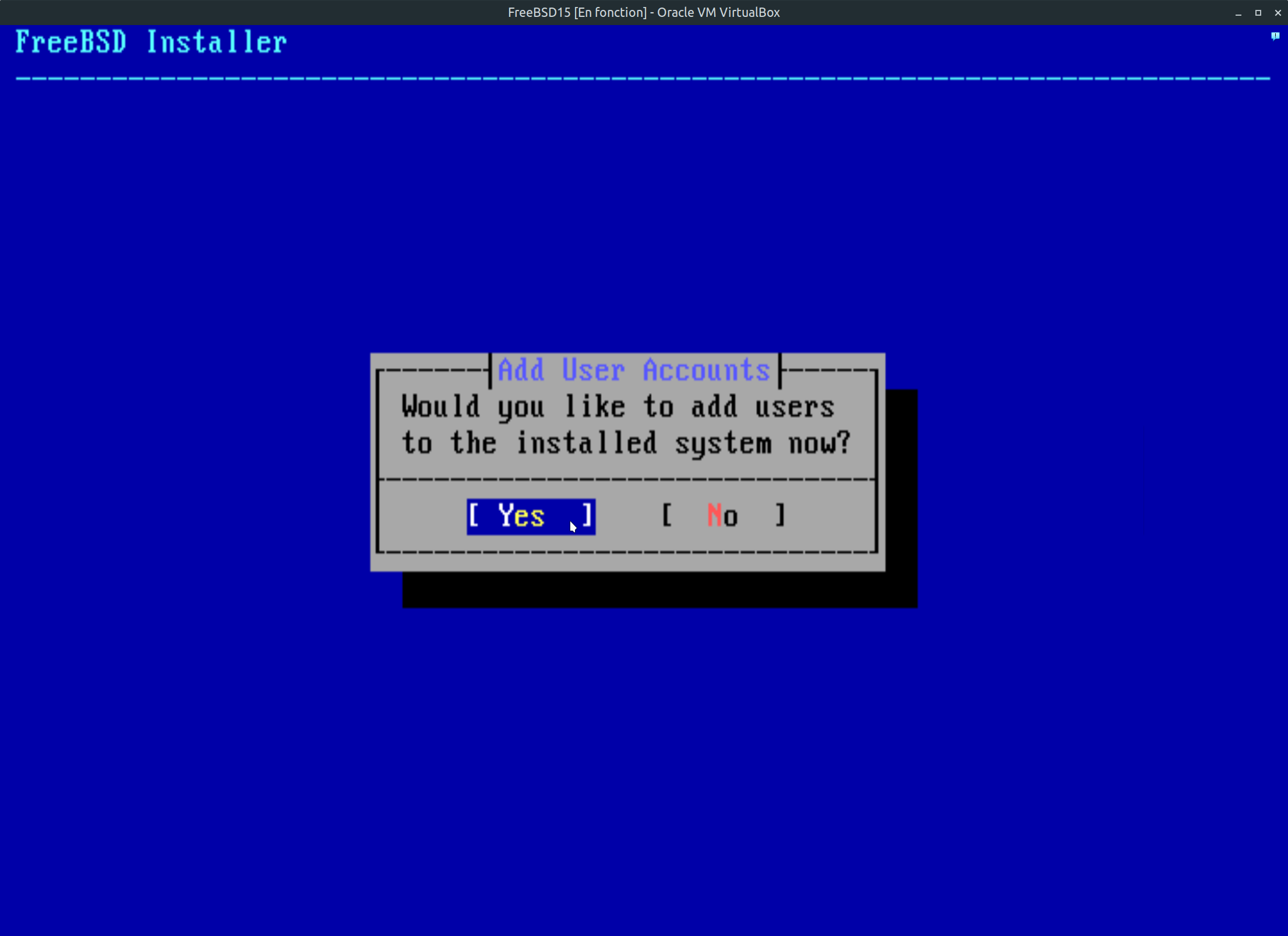 Étape 27: L'installateur de FreeBSD est tellement bien fait, qui vous donne encore la chance de revenir en arrière avec cette fenêtre contextuelle. Vous n'avez qu'à vous placer sur No et faire entrée au clavier pour valider