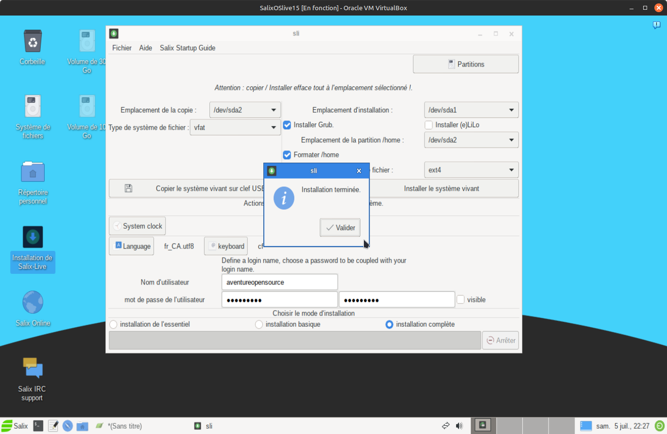Salixliveinstall Etape12lorsqueprêtcliquesurboutoninstallprogramelive