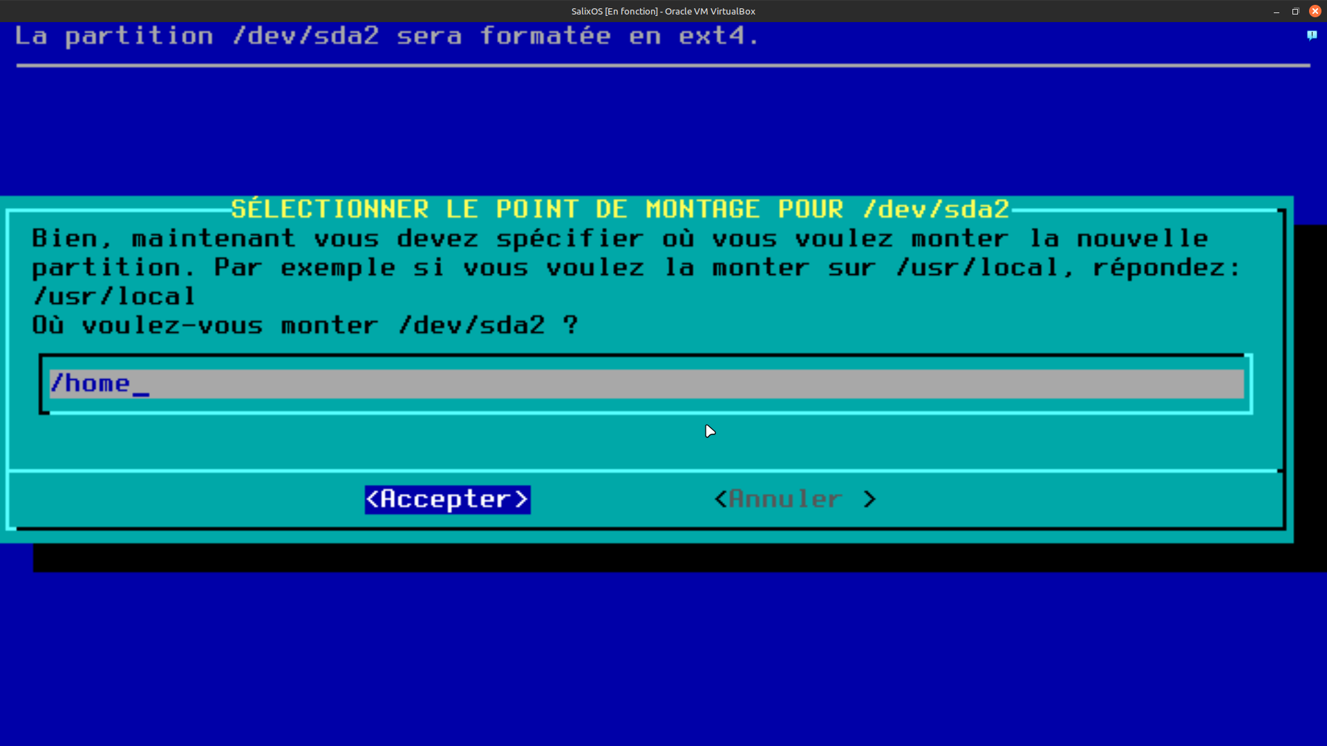 Section 2 installation SalixOS partionnement du disque