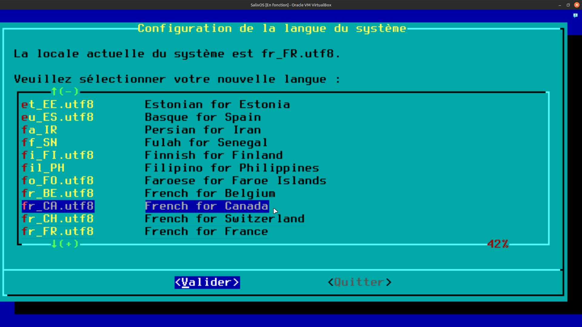 35. Une fois votre pays et la région sélectionner, vous aurez l'impression de vous répéter ici, mais vous devez encore une fois sélectionner la langue de votre système. Dans mon cas, je sélectionne French for Canada et je clique "entrée" sur le clavier pour valider.
