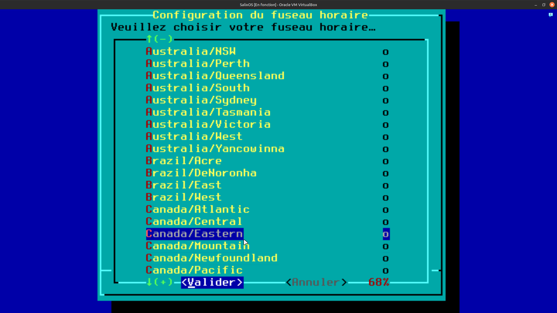 34. Dans cette fenêtre de dialogue,  vous devez utiliser les flèches du clavier pour sélectionner votre pays. Dans mon cas, je sélectionne Est du Canada. Ensuite valider votre sélection à l’aide de la touche "entrée" du clavier