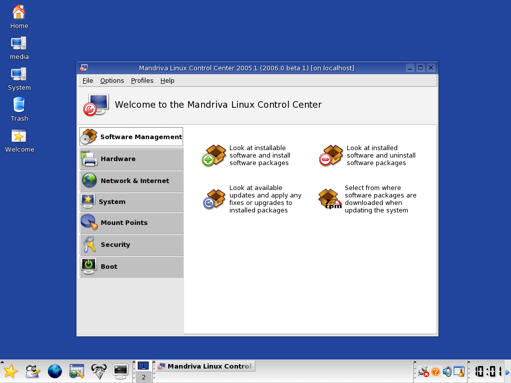 Avec ce laptop d'entreprise sous Windows 98, j'ai eu droit à quelques écrans de la mort de temps en temps. Comme mentionné plus haut, j'avais Slackware sur le vieux Desktop que j'explorais de temps en temps. Un mélange de curiosité et d'intérêt technique. C'est à ce moment là que je me suis intéressé au système d'exploitation Linux. Debian 3.0 Woody a été le deuxième système Linux que j'ai installé et utilisé en parallèle, Ce système Debian me semblait plus abouti, l'environnement de bureau gnome 2 était très fonctionnel et rapide. J'ai utilisé Debian Woody comme deuxième système quelques temps. Ensuite j'ai fait comme beaucoup d'utilisateur Linux, je suis passé d'un système à l'autre soit CentOs, OpenSuse, Mepis, Mint, Mandriva que j'ai adopté pour 2 ans. Mais toujours comme deuxième système. Puis un jour, j'ai eu droit à un autre écran de la mort sous Windows XP. C'était autour de 2004, 2005! C'est l'année ou j'ai passé définitivement sous Linux sans jamais regarder en arrière. Mandriva a été ma distribution jusqu'en 2008, elle était facile à installer, à utiliser et j'aimais particulièrement le centre de contrôle d'administration du système. Encore aujourd'hui le centre de contrôle amélioré existe sous les dérivés de Mandriva Linux, soit OpenMandriva et Mageia qui sont respectivement les enfants à la suite de la fermeture de la société. Le gestionnaire de paquet (logiciel) en mode graphique simple d'utilisation par catégorie était très agréable à utiliser pour l'époque.