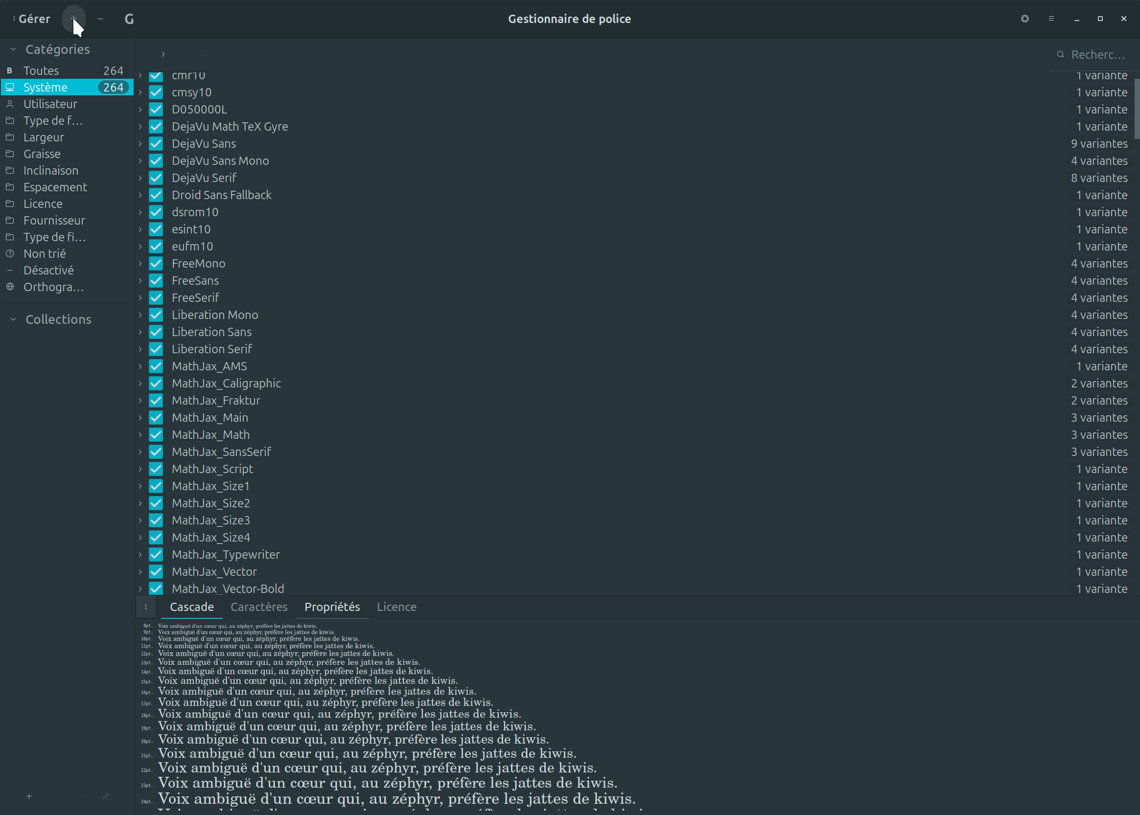 Sous Linux l'ajout de police pour des besoins supplémentaires en terme de choix, est relativement simple à faire. L'application qui vous permet de faire cette action, est Font-Manager que vous pouvez retrouver sur github par ICI.