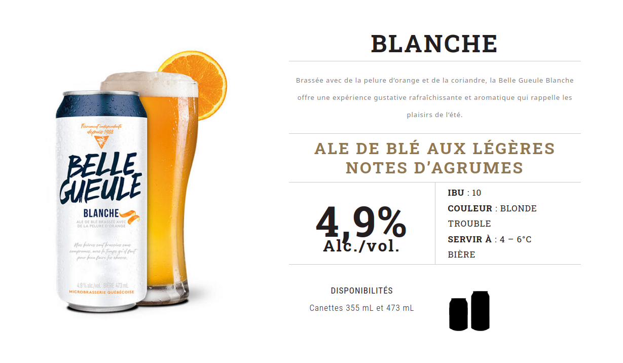 La microbrasserie québécoise Belle Gueule est fière d’annoncer le lancement de sa toute nouvelle bière, la Belle Gueule Blanche.