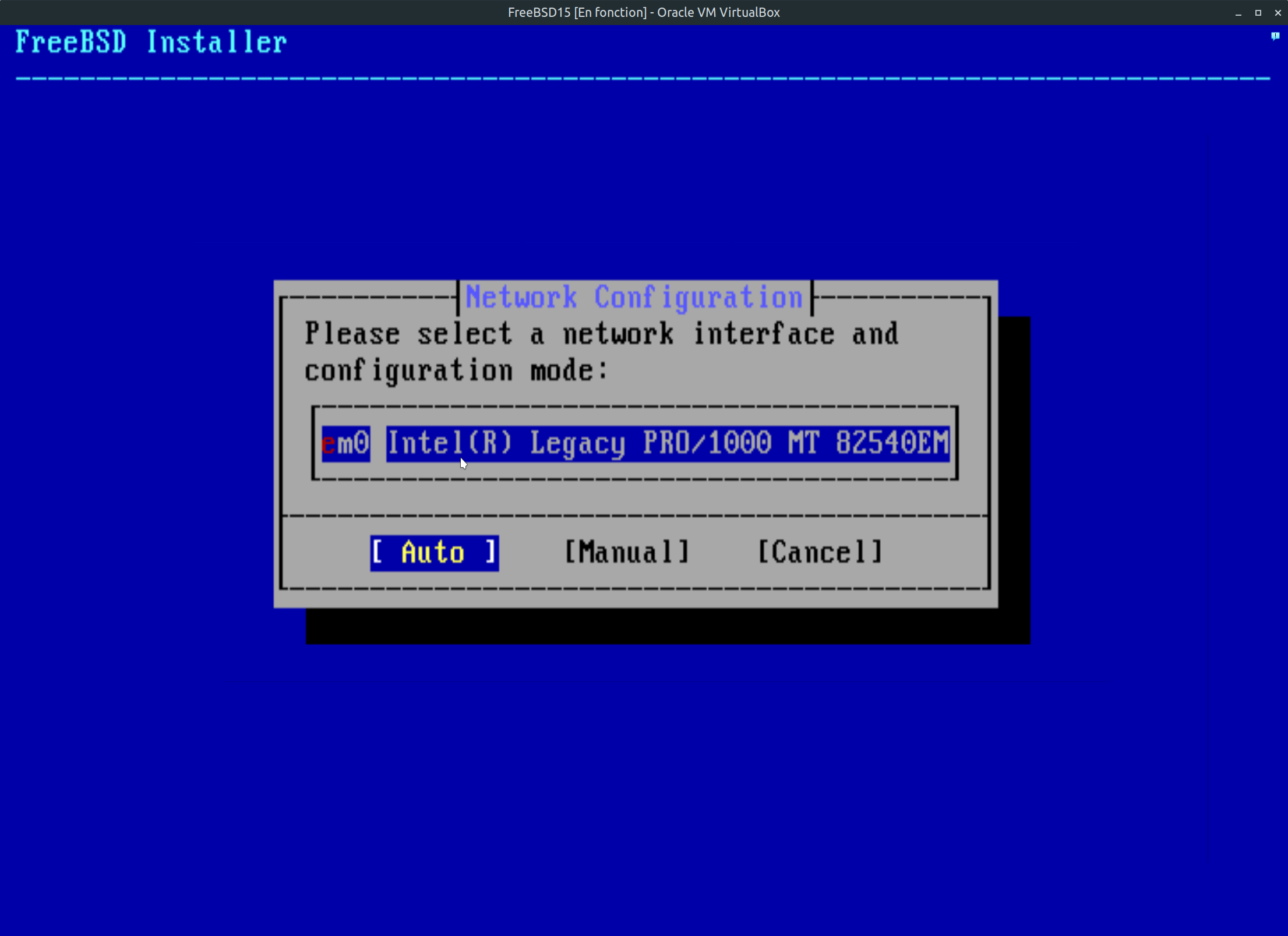 Étape 9: Comme mentionné à l'étape précédente, lorsqu'on votre PC est branché directement, le processus est simple. Cette fenêtre vous donne l'interface et le mode de configuration de votre connexion internet. Utiliser le mode Automatique. J'ai toujours utilisé ce choix au cours des années et tout à fonctionné parfaitement. Faite entrée au clavier pour poursuivre.