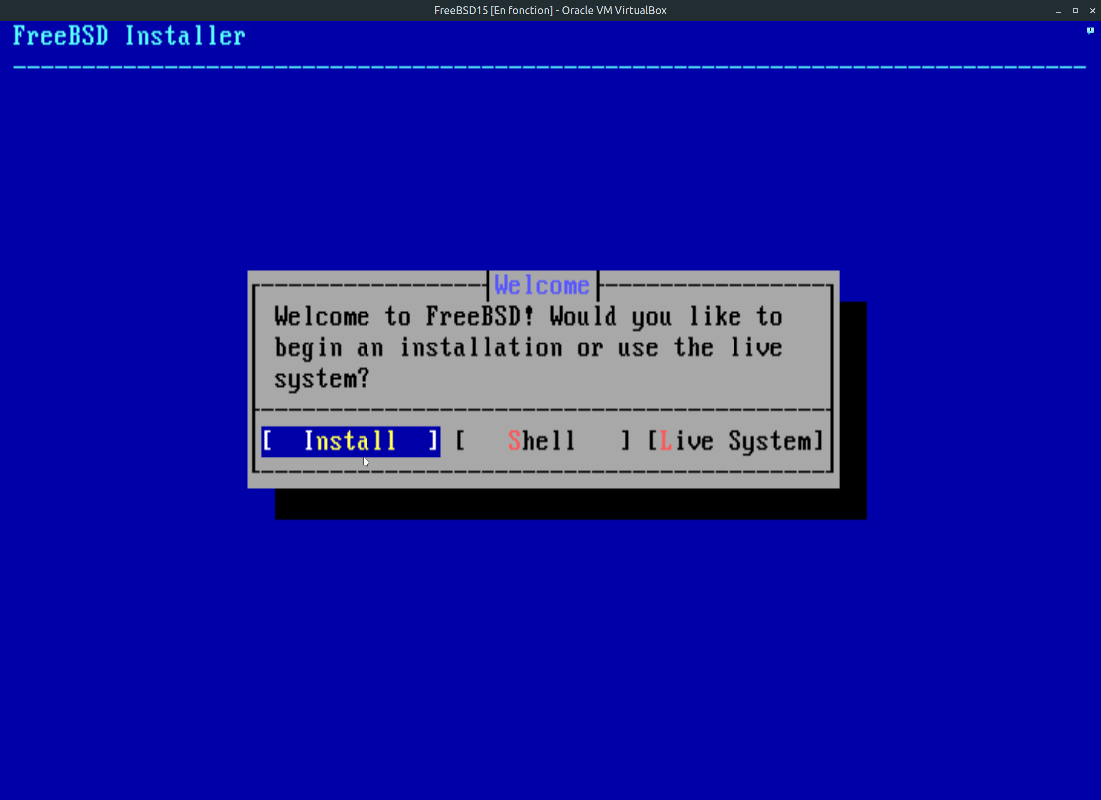 Une fois l’iso graver sur DVD ou sur une clé usb, il est temps de lancer votre système FreeBSD. Bien entendu, vous devez brancher votre clé usb sur votre ordinateur. Ne vous reste qu’à redémarrer votre PC et sélection le lecteur USB afin de démarrer dessus. Pour ce faire lors du démarrage de votre ordinateur, vous pouvez normalement sélectionner la sélection du périphérique au démarrage par la touche ESC ou F12 du clavier en appuyant a quelques reprises lors du démarrage du PC.
