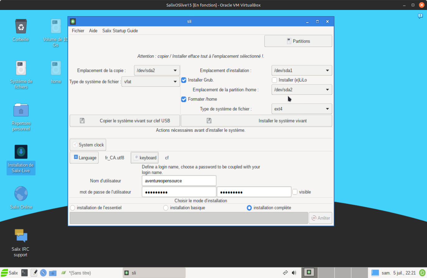 Salixliveinstall Etape12lorsqueprêtcliquesurboutoninstallprogramelive