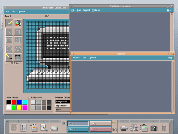 Mon histoire avec Linux à commencer autour de 1996 lorsque j'ai travaillé dans une firme informatique spécialisée en GMAO. J'ai travaillé comme intégrateur logiciel pour eux pendant 5 ans. Par la suite je suis parti en entreprise personnelle dans le même domaine pour 20 ans. Toujours comme intégrateur chargé de projet. Enfin bref! Voilà le petit topo. C’est en 1997 que j'ai installé ma première distribution Linux soit Slackware. C’est un développeur programmeur qui m’a donné les 12 ou 14 disquettes de Slackware 2.0. Je me souviens encore de la procédure d'installation une disquette à la suite de l'autre. Je peux vous dire que j'ai dû me reprendre à plusieurs reprises pour enfin avoir un bureau Linux. Honnêtement c’était rudimentaire. Voici à quoi Slackware ressemblait à cette époque.