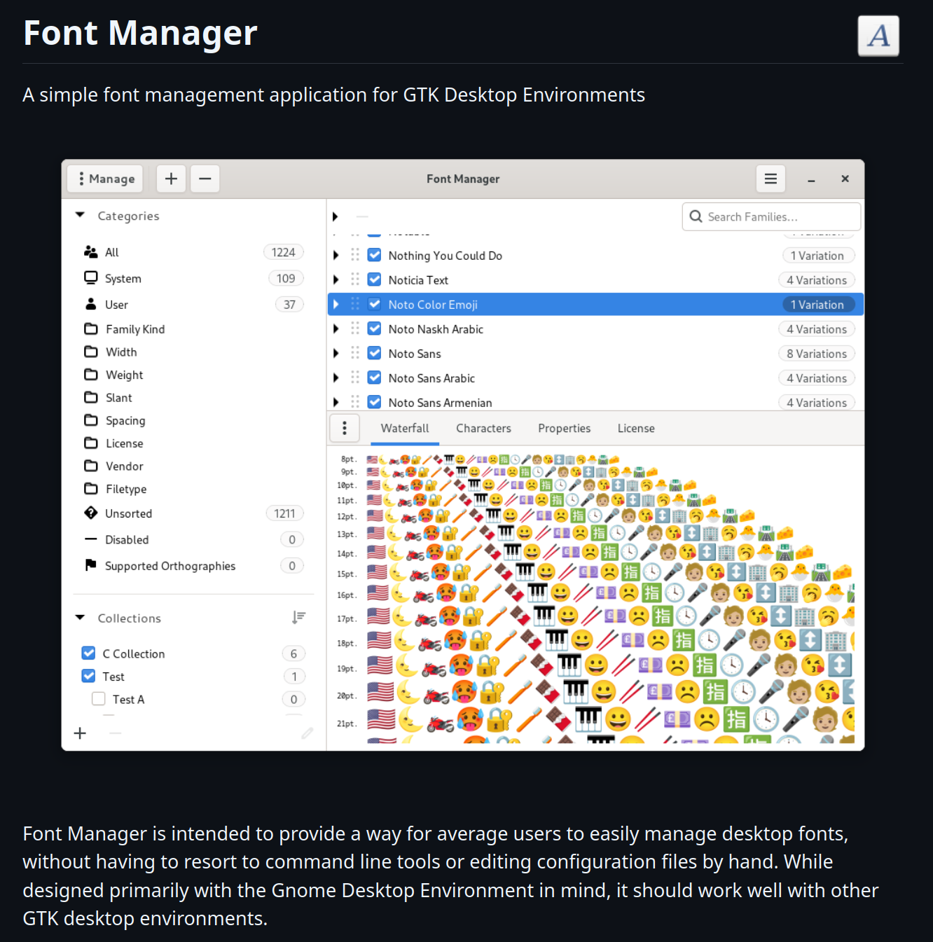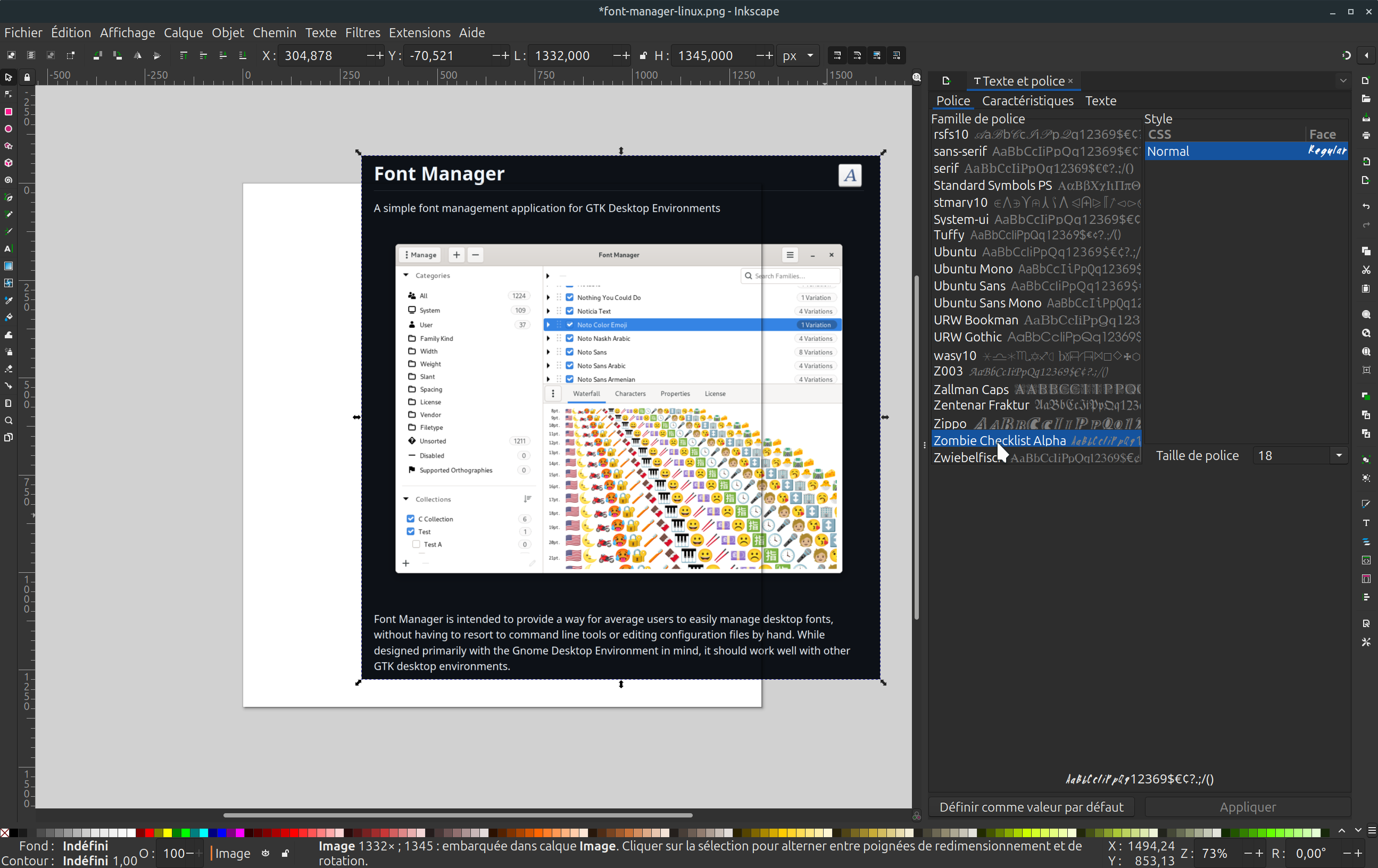 Sous Linux l'ajout de police pour des besoins supplémentaires en terme de choix, est relativement simple à faire. L'application qui vous permet de faire cette action, est Font-Manager que vous pouvez retrouver sur github par ICI.