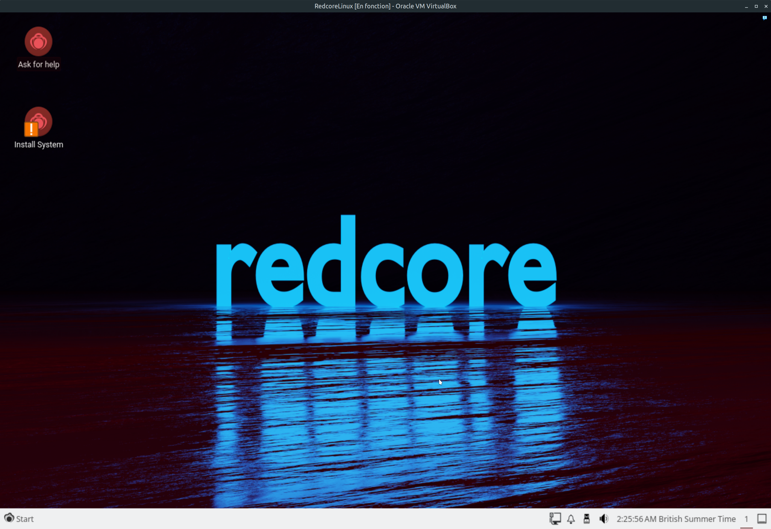 Voici le bureau de Redcore Linux une fois lancer en mode live. L'environnement bureau LXQT est un gestionnaire bureau en principe Léger. Je dit bien en principe car le ne l'ai jamais réellement utilisé antérieurement.