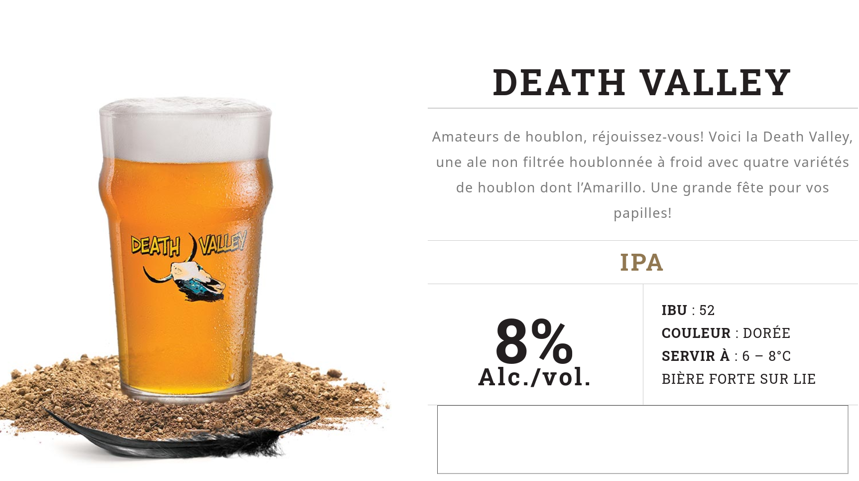 Houblonnée à souhait, cette bière dorée alliant la complexité d’une bière triple belge à la puissance des IPA du Nouveau Monde se situe au confluent de deux cultures. À l’image de nos ancêtres français explorant l’intérieur du continent à la recherche de nouveaux territoires, à votre tour maintenant d’explorer.